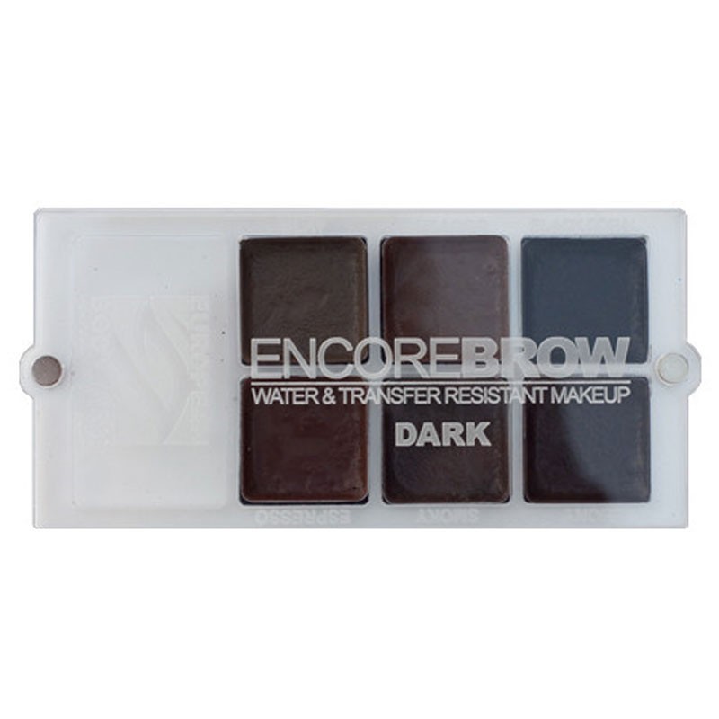 EncoreBROW alcohol activated palettes provide instant and water resistant brow color. The makeup is designed to touch up, enhance or draw professional looking brows. The EncoreBrow Dark palette colors include: Clay, Tobacco, Black Coral, Espresso, Smoky, Ebony