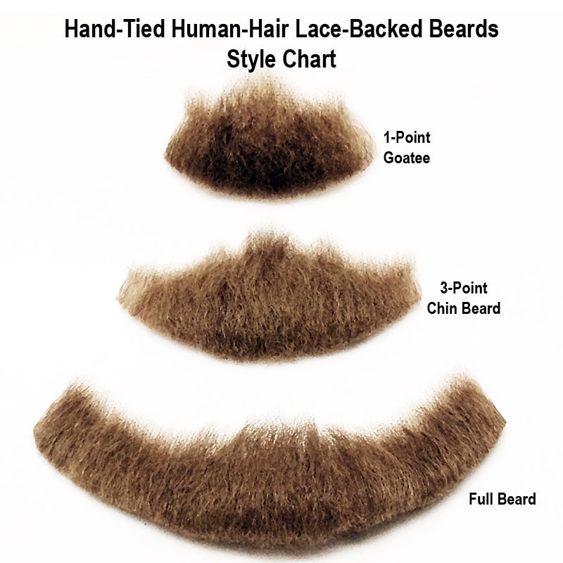 These one-point chinbeards are made of real human hair and are hand-tied onto a lace backing. They are perfect for any stage performance.