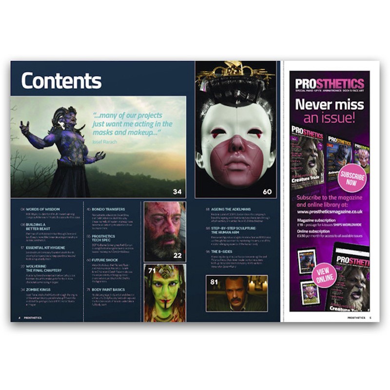 Content includes articles about screen prosthetics, make-up FX and related fields, in-depth interviews with the industry's leading global practitioners, technical information about the materials used in the craft and a fabulous collection of detailed tutorials by highly accomplished artists. This almost 100-page magazine is packed full of information you won't want to miss.